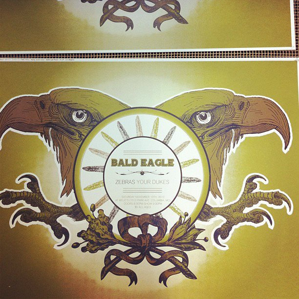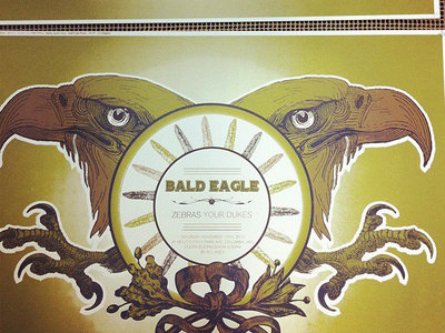 This is a 18" x 24" 3 color screen printed poster, printed by our friends at Orchard Street Press in Milwaukee, WI. The poster is/was for our "return" show in Columbia, MO 11/2/2012, the show also featured the band Your Dukes and Zebras. This is a limited print, only 50 were made. Hand printed, ship is a cardboard tube.